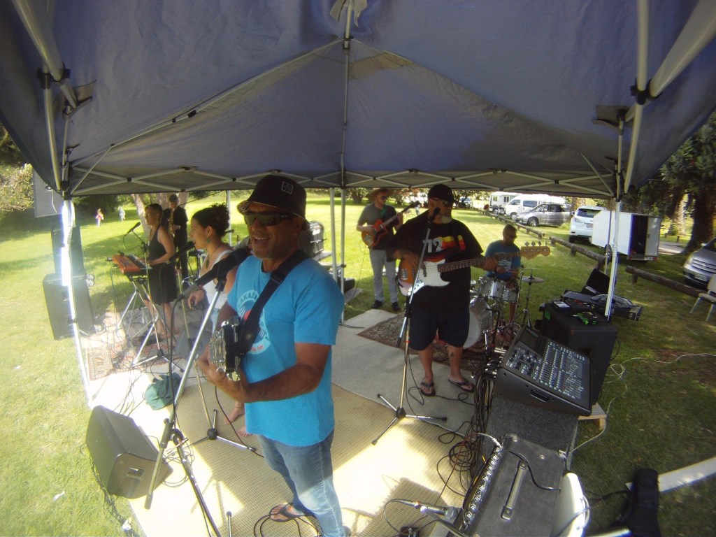 We had a random pop-up gig in the Queen Elizabeth II Park. Of course it was Ray’s idea cause most of the good ideas are his. But not announcing the idea or venue until the actual day was a tactic. We didn’t know if we were allowed to just set up in a public space or if the park ranger would agree. But there wasn’t anything to worry about. The park is run by the Greater Wellington Regional Council and the ranger not only agreed but gave us access to power which meant no organising a generator. So awesome! We set up, posted the venue on facey that same day. It was the week between Christmas and New Year when people wanted a relaxed thing to do with the whanau.