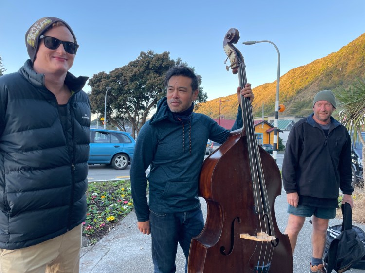 We are pretty positive people and always hanging out to jam so we decided to rehearse on Waitangi Day and set up outside the Wai Ata studio here in Paekākāriki. Told a few friends so we didn’t break any rules regarding numbers. And there were the casual walkers who stopped to listen for a bit. It was great, quite a loose jam and being outside and on the edges of QE ll park it was safe.